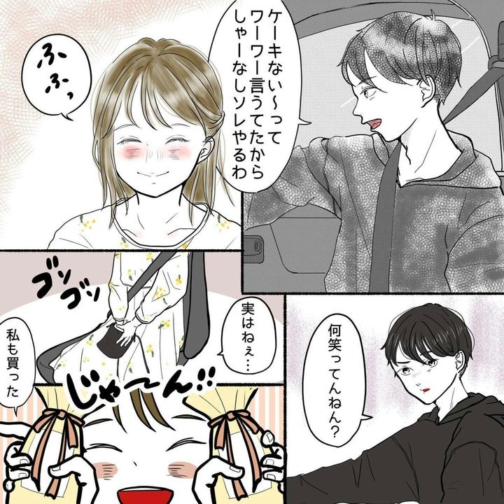 なんと、夫に買っていたお菓子を、夫も買ってくれていたことが判明。サプライズでお互い買っているところも同じでした。思いやりあふれる2人の様子が微笑ましいですね。普段クールな分、こういう時の優しさがよりうれしく感じそうです。