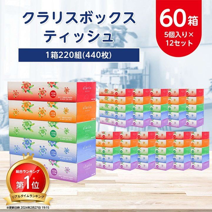 1位:クラリス ボックスティッシュ 60箱