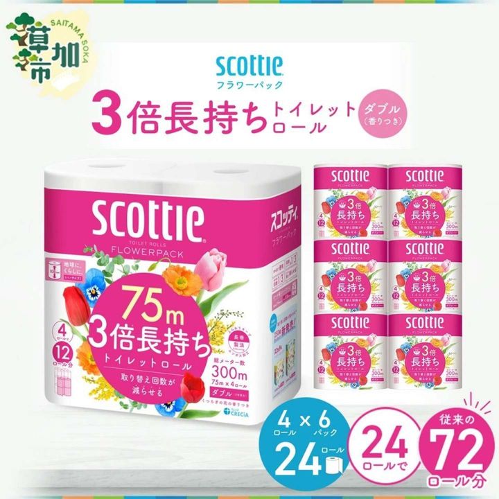 5位:スコッティ フラワーパック 3倍長持ちトイレットロール 24ロール(72ロール分相当)