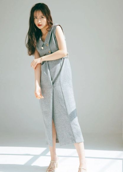 ノースリーブワンピが主役のコーデ。ハンサムな青みグレーがコーデを大人っぽい服装に仕上げてくれる!Iラインを意識してスタイルアップも狙って♡