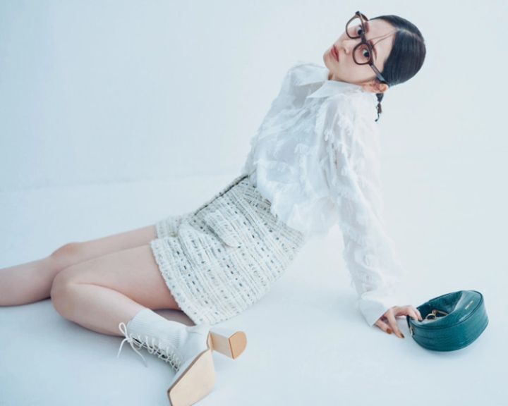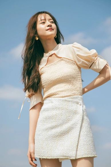 ヘルシーな肌見せが叶うセットアップコーデ。ショート丈&ハイウエストのアイテムでスタイルアップ効果も◎。ツイード素材×涼しげなカラーで清楚で上品な印象にまとめて♡
