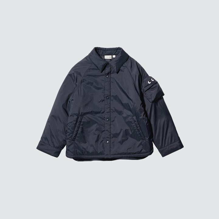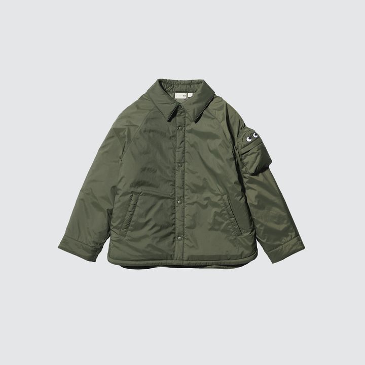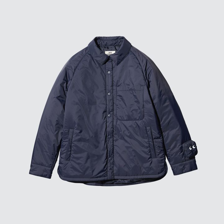 今年はアウターもお目見え。ジャケットは次世代の高機能中綿 「パフテック」が空気を閉じ込めるので暖かく、かつ軽いので毎日の送迎にもぴったり。アニヤのアイコンである目のモチーフがお茶目で、どんよりしがちな冬の朝も明るい気持ちになれそう。コンパクトに折りたたんで持ち運ぶことのできるパッカブルタイプなので、通勤や旅行でも役立つこと間違いなし。メリノウールのカーディガンは右袖のステッチやの前袷のボタン部分にもさりげなくアニヤらしいディテールが。冬のレイヤードの主役になりそうです。パフテックシャツジャケット¥8,990 メリノオーバーサイズVネックカーディガン¥4,990(すべてユニクロ×アニヤ ハインドマーチ)
