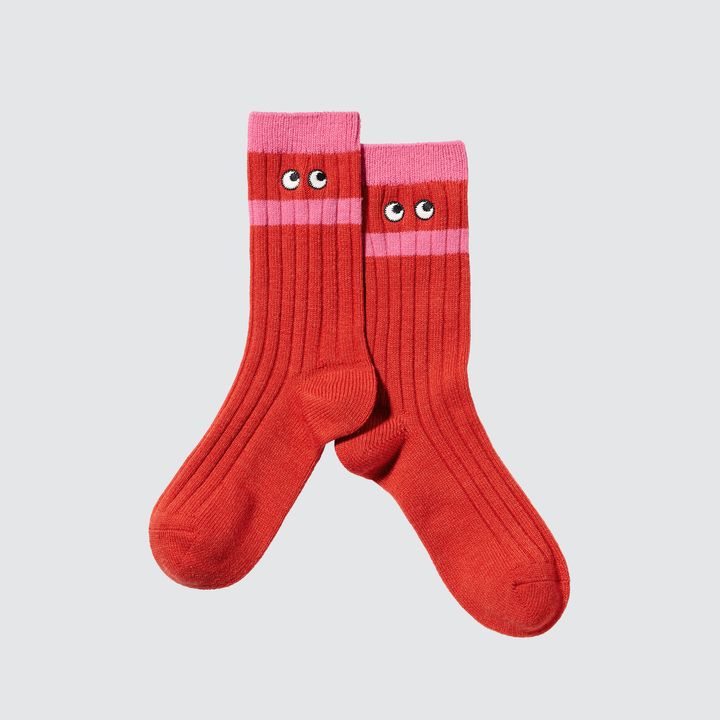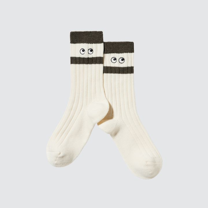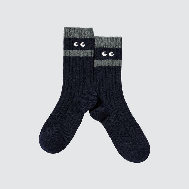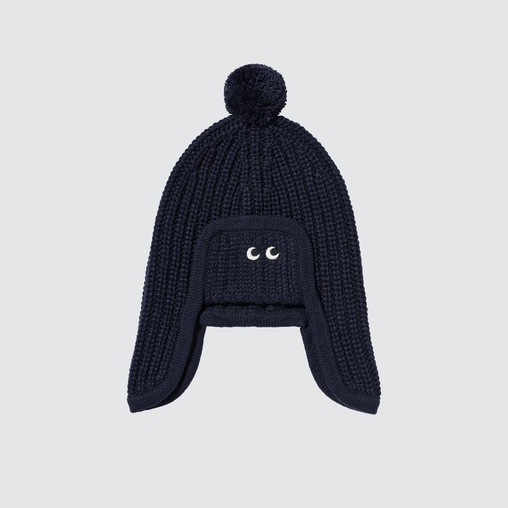 思わずキュンとしてしまう可愛さのキッズアイテムも、パワーアップして再登場。ソックス、ニット、ジャケット、ニット帽と、大人にも負けないラインナップが揃います。おすすめは親子でおそろいが叶うパッカブルジャケットや、アニヤらしいモチーフがチャームポイントのニット帽。いたずらっ子のような表情の目玉モチーフに思わずキュン♡ 耳まですっぽり隠れるデザインなので、耳当てがなくても防寒力は◎です。パフテックシャツジャケット(キッズ)¥4,990 ヒートテックニットキャップ¥1,990 メリノクルーネックセーター¥2,990 ヒートテックソックス2足組¥790(すべてユニクロ×アニヤ ハインドマーチ)