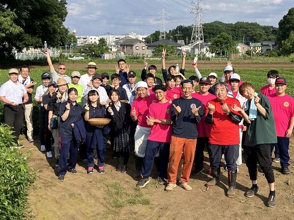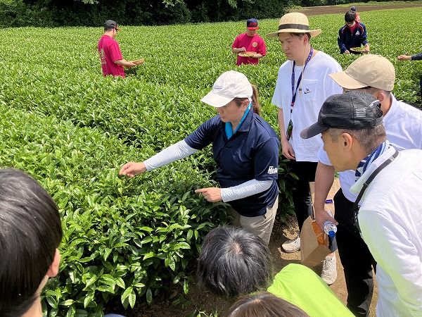 キリンビバレッジ首都圏統括本部のメンバーによる茶摘み指導の様子