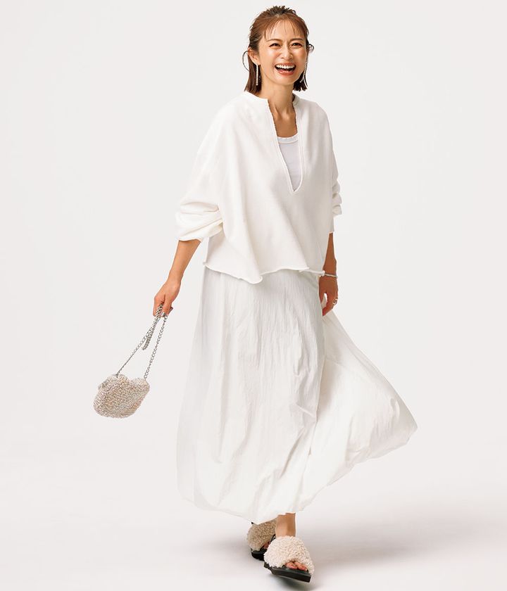 異素材で緩急をつければ、白コーデにメリハリが生まれる