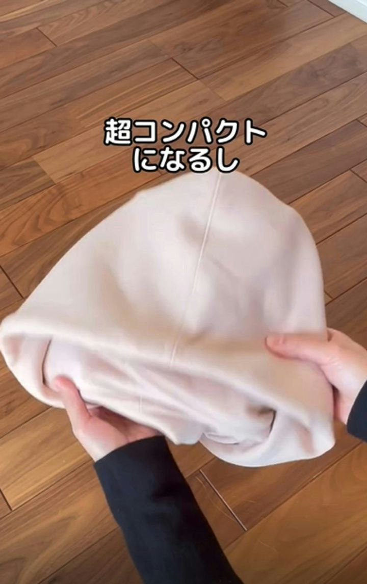 コンパクトに収まるたたみ方なら、旅行などでも荷物になりにくいですね。これなら防寒対策に気軽に持っていけそうです。