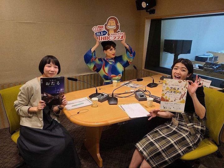(左から)ゲスト・小樽観光協会・島口真利絵さん/したっけラジオMC・満島てる子/したっけラジオMC・HBC森結有花アナウンサー