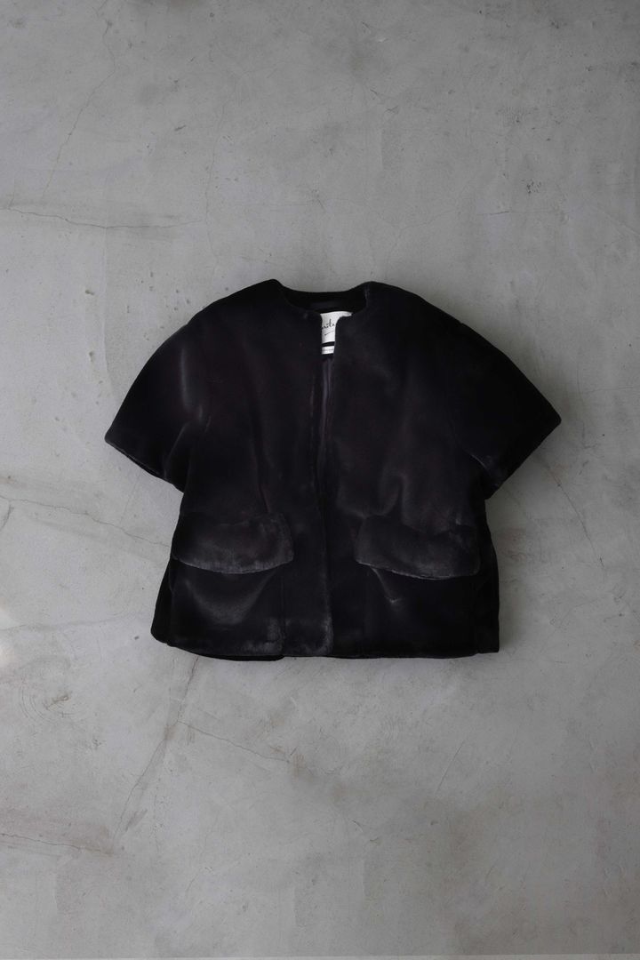 コンパクトなシルエットで、ゴージャスになりすぎないエコファージャケットはアクセサリー感覚で着られる一枚。トップメゾンにも選ばれるイタリア・エコペル社のエコファーを使用していて、リアルファーのような柔らかで表情豊かな風合いが魅力です。ファーアウター¥46,200(マルティニーク/メルローズ)