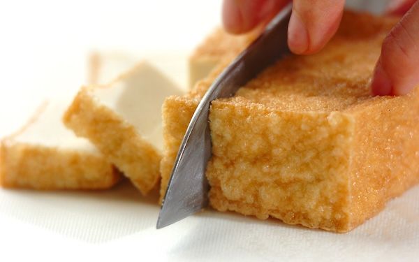 厚揚げとは、木綿豆腐を水切りしてから高温で揚げたもの。表面は油で揚げていますが、中は豆腐の食感を残すために十分に火を通しておらず、「生揚げ」とも言われています。