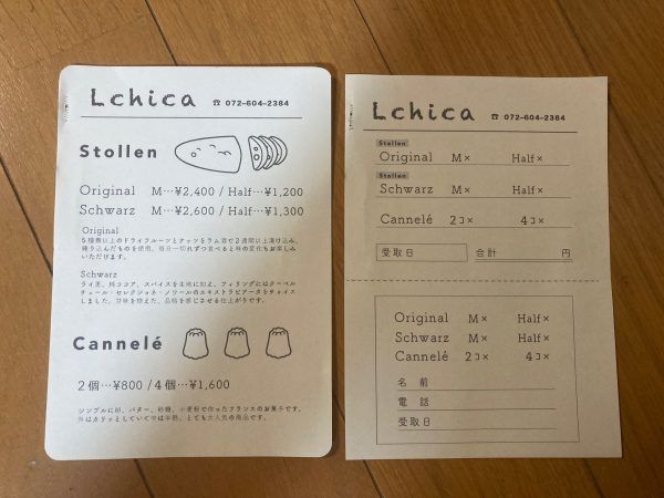 店内にはパンとお菓子教室の案内が…。 少人数制で働いている方も参加できるように日曜や夜間(午後7時~10時頃)の教室もしているとのこと。 レッスン料はパンが4000円から、お菓子が6000円からとのこと。 2人以上で開講されていて4人までの少人数制。 こちらのお店の美味しいパンをいただくと、私も教室に参加したくなりました。 また店頭販売以外にシュトーレンやカヌレの注文受付もされてました。