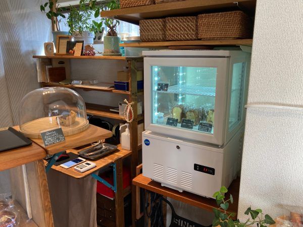 店内の右側のショーケースには、その月限定の人気のバウンドケーキが並んでいます。 私が買いに行ったときは、柿とナッツとクリームチーズ、烏龍茶とラム漬けプルーン、アイリッシュウイスキーケーキ(各290円)の3種類。毎月変わるようなのでそれも楽しみですよね。