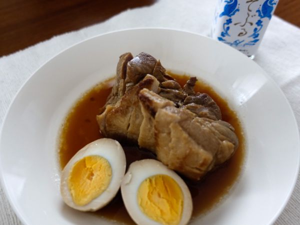 出来上がった煮豚にお好みで「ぞぶる」を。私は大さじ1かけてみました。いつも煮豚を作る時は八角や生姜の皮などを加えるのですが、今回はぞぶるの味を楽しむためににんにくとお酒・砂糖・濃口醤油のみで。豚肉のコーラ煮という料理がありますが、もっと風味が豊か。中華料理屋さんの煮豚という感じ。煮込む段階でシロップを加えても◎。