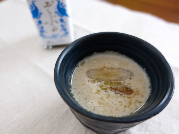 ポタージュにリキュールを添加し、香りを引き立てるレシピがあります。そのイメージで。 ごぼうの香りと「ぞぶる」の風味がいいコンビネーション。普段のごぼうのポタージュより味が引き締まった感じ。