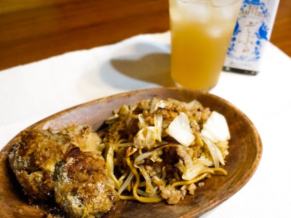 大洲でうまれたクラフトコーラですもの、ご当地の名物と合わないわけがない!と作ってみました。いもたきをコロッケにした大洲コロッケと大洲のちゃんぽん(大州在住の友人に聞いてはじめて知りましたが、そばめし?!)。コロッケはもちろんソース味とこんなに合うとは…!こりゃ止まらん。
