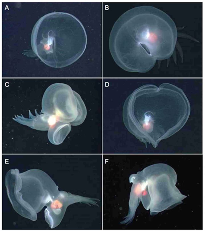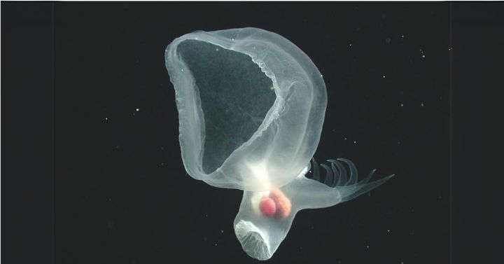 まず、この生物は大きなフードと付属肢を連動させるように動かしてフワフワと移動していました(自由遊泳の姿を捉えた映像は記事の最後に添付してあります)。