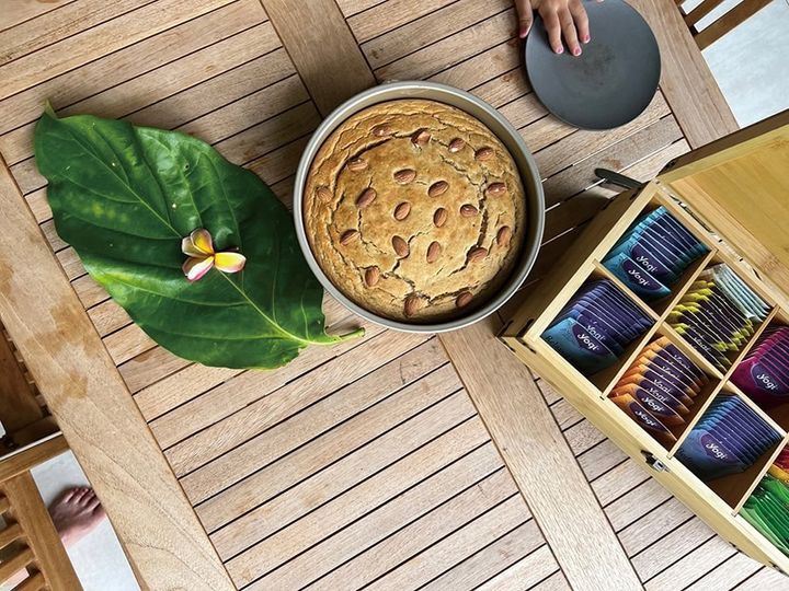 鶏たちのたまごを使って作ったグルテンフリーケーキでティータイム