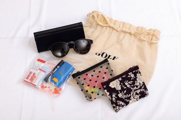 カッチリ系バッグもかわいいのですが、私が愛用中なのはどんな隙間にもフィットする布製巾着袋。ゴルフグッズはここに入れず、キャディバッグに集約するのが私流です。