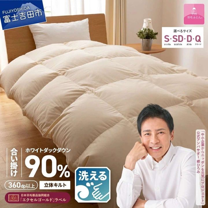 世界遺産「富士山」の麓で作られた高級羽毛合い掛け布団です。側生地は軽量なポリエステル交織の高密度生地を使用。防ダニ材を使わずダニの侵入をブロックします。