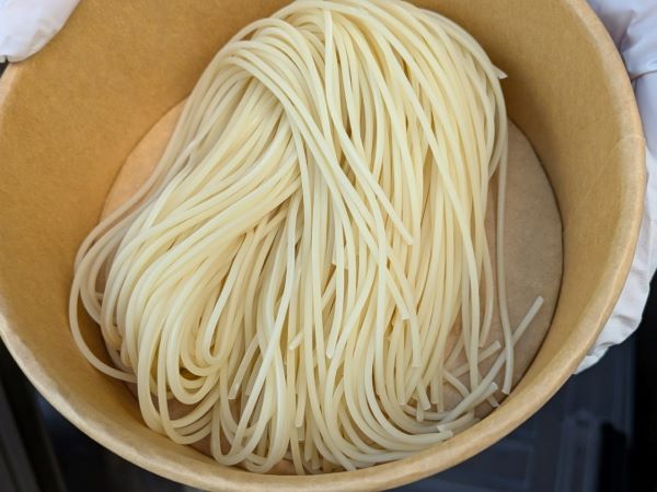 生パスタは水分を吸収しやすいため、出来立てを食べるのが一番!でも、持って帰って食べるなど、すぐに食べられない時は、茹でたパスタにソースを別添えしてもらえます。もしくは、自分でゆでる自信がある方は、生のパスタと別添えのソースの組み合わせも可能ですよ。