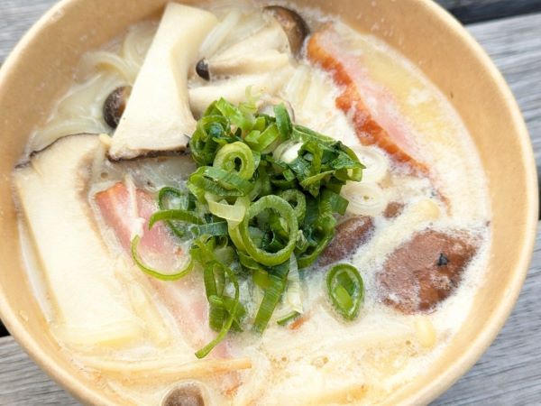 きのこがたっぷり食べたかったので、期間限定の「きのこおだしバタークリーム」をいただいてみることにしました。注文を受けてから茹でるので、少々待った後出来上がったのがこちら!糸島産の小葱がたっぷり乗って、きのこもモリモリです。