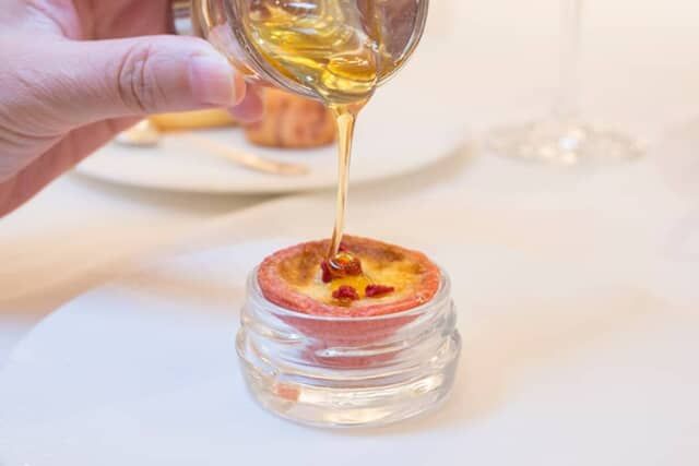 ▲「洋梨のコンポートヴェルヴェンヌのジュレ “ハンガリー産アカシアはちみつ” のエキューム」