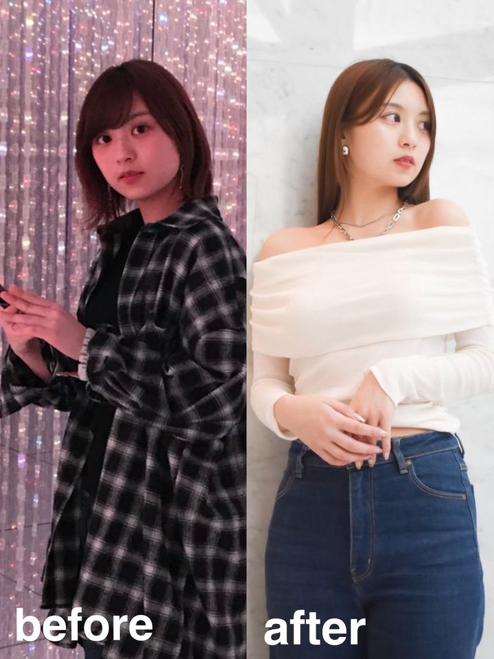 など自分に合うシルエットの服を心掛けました。特にトップスをメインにしたコーディネートが効果的でした♡