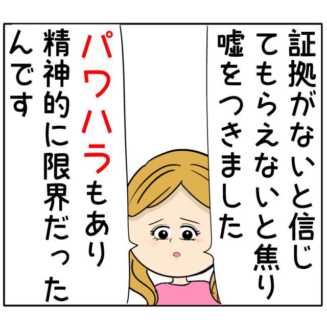 「証拠がないと信じてもらえないと焦り嘘をつきました。パワハラもあり精神的に限界だったんです」と新たな嘘を重ねます。