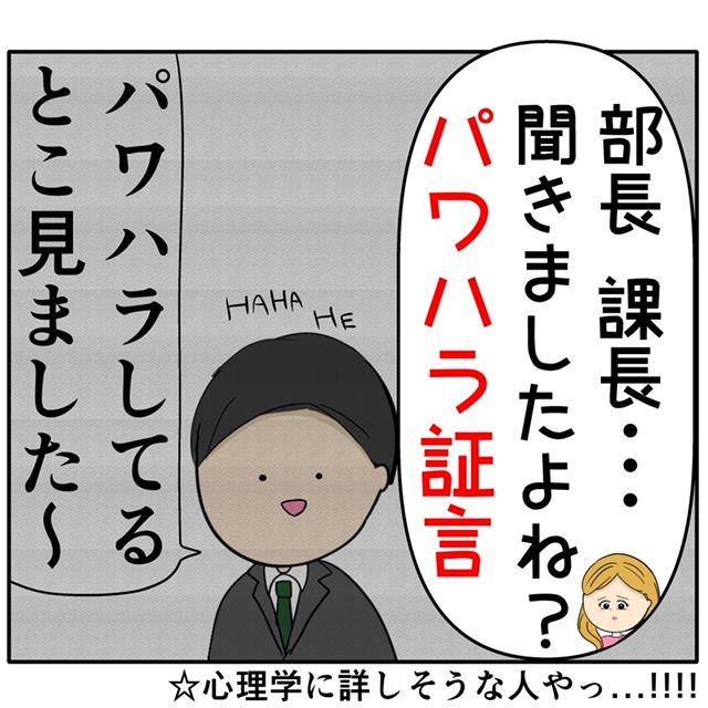 ふり子さんは「部長、課長・・・聞きましたよね?パワハラ証言」と、パワハラ証言をアピールします。
