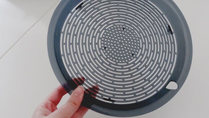 通常のザルのように目が細かくないので、隙間に入った食材を取り除きやすく、お手入れがラク。表面がフラットな形状で洗いやすいのも特徴です。