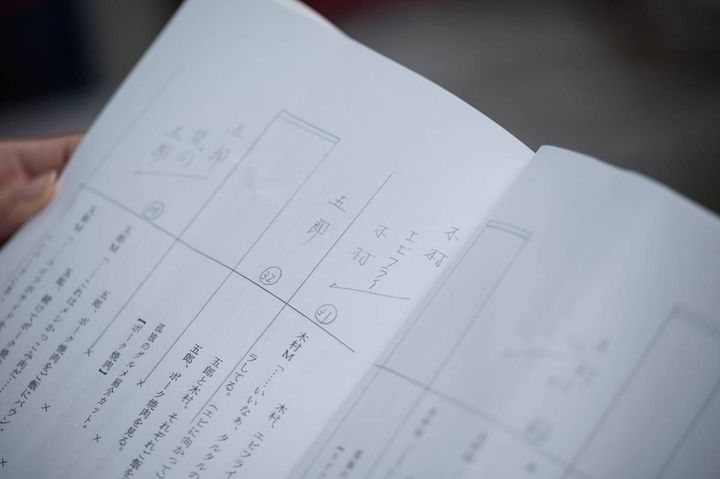 赤松さんによる細かなカット割りが記された台本。食事シーンでカメラがだれを追い、何を映すのかという流れが具体的に示されている。 赤松:おいしそうって、ただ口もとをアップにすれば伝わるわけじゃない。目、鼻、口、顔全体がひとつになって、うまいなぁ、っていう表情が出てくる。俳優さんは、とくに目。おいしいと思って食べているときの目の力、それをちゃんと撮りたいなと思ってやってきました。