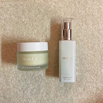 FEMMUE スリーピングマスク 4,620円、グロウドロップス 50g 7,370円 「美容液はみずみずしく水分量を抱えた肌に。さらにその上から蓋をするようにスリーピングマスクを塗ると、美容液で満たした水分を閉じ込めて朝までしっとりした状態が続きます。併用することで肌のバリア機能が向上し、荒れにくい肌を育ててくれます」(木部明美さん・ヘアメイク)