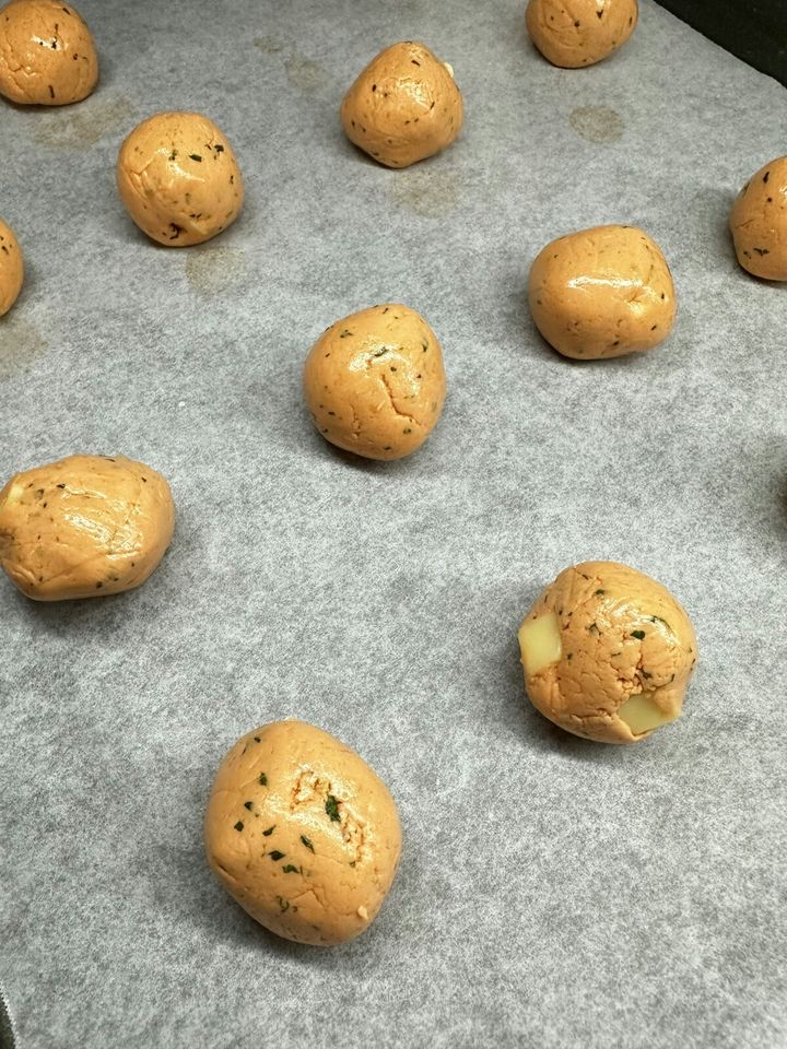 1つ15gで丸めて並べます。オーブンは予熱180℃に設定し、予熱完了後8〜12分焼いたら完成です。