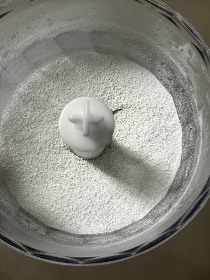 1 白玉粉をブレンダーにかけて細かくします。ブレンダーがない場合は袋に入れ麺棒を転がしながら粒を小さくします。
