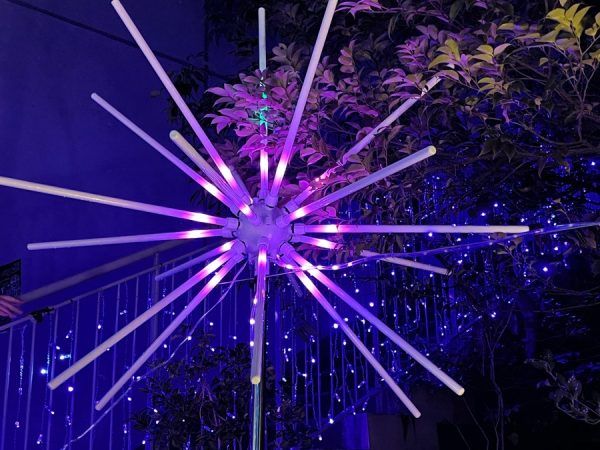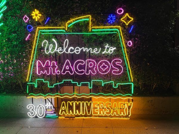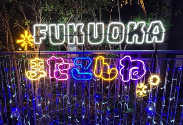 イルミネーションがお出迎え。来年4月に開業30周年を迎える「アクロス福岡」を祝っています。