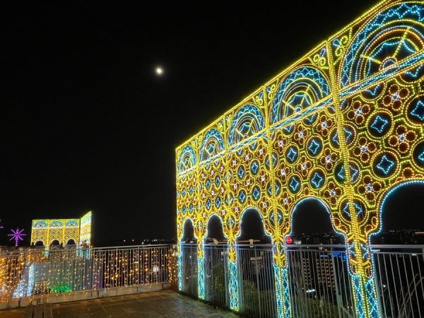 屋上のパレスエリアには、高さ4.5mの宮殿モチーフのデザインのイルミネーションがあります!