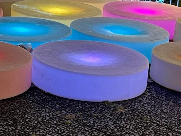 屋上にある、足で踏むと光の色が変わる新体験ができるエリア