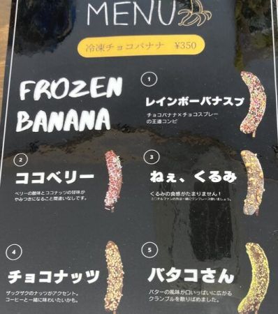 また、以前の期間限定オープンの時期にはなかった冷凍チョコバナナもあり。