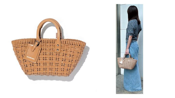 3年くらい前にバレンシアガで購入。かごバッグっぽいけれどコートにも似合うシーズンレスなところもお気に入り。バッグを選ぶ時はどんな服にも合うこと、荷物がしっかり入ること、でも気分がアガることを重視。ハイブランドのものを頑張って買って、使い倒します。