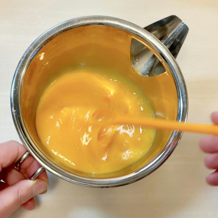 かいいま🤗さんが「ドゥルン解消」に使っているのは、たまごのなめらかスティックというグッズだそうです。投稿されていた写真では、黄身と白身がきれいに混ざっていますね。簡単にここまで混ざるのはすごい…!