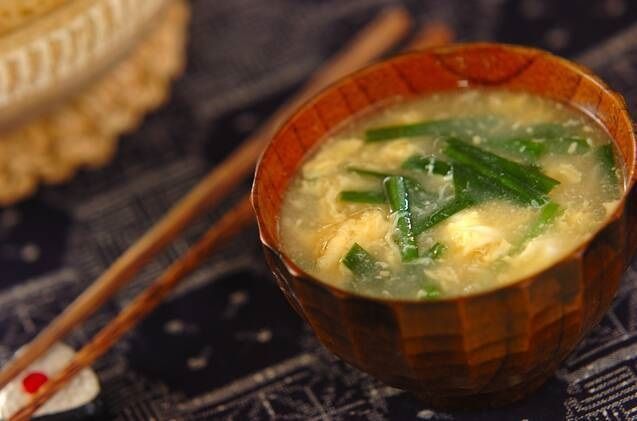 いりこが香るだしに、ニラとふんわり卵がよく合うみそ汁です。ほっとするやさしい味わいでおすすめ。こした後の煮干しは佃煮やふりかけにしてもいいですよ。
