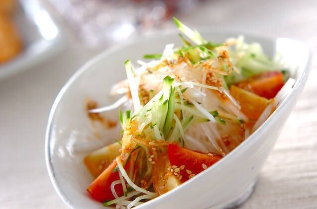 ピリ辛でニンニクが効いた、韓国風のサラダを食べたい時におすすめの。ドレッシングを手作りすれば、わざわざ市販の物を買わなくても楽しめますよ。