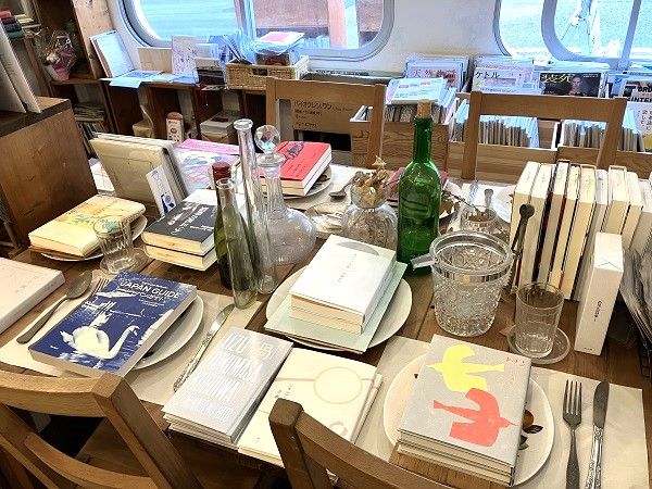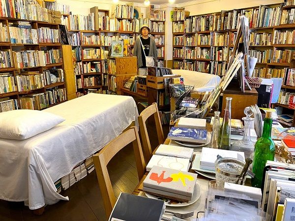 店内に置かれているのは、古本がほとんど。食卓やソファー、ベッドといったインテリアを使って本を配置することで、柔らかい雰囲気を作り出しています。食卓の上に本が置かれていたりして、とっても素敵!