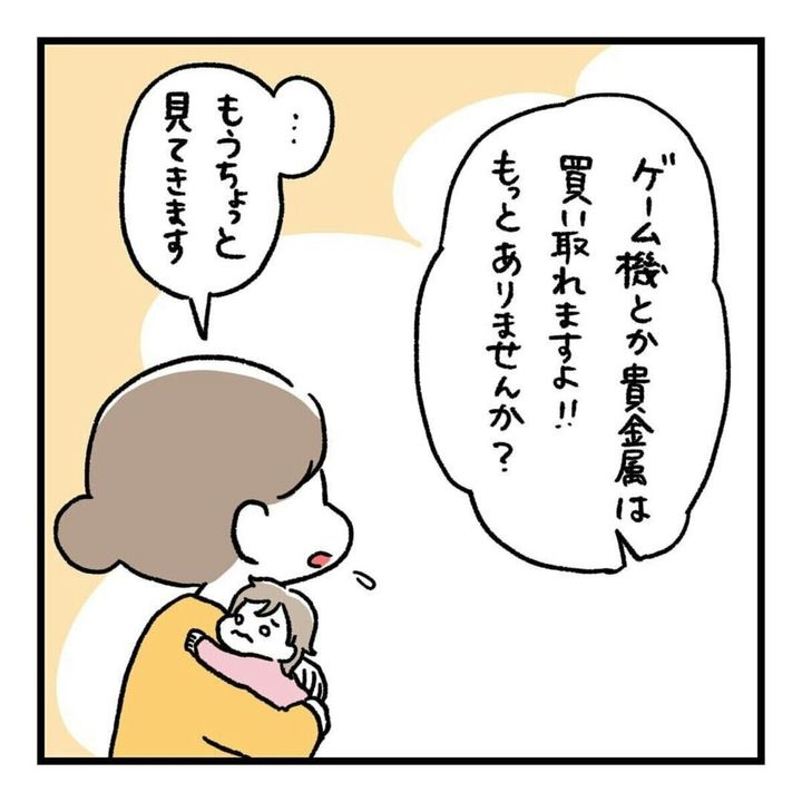 「5つ買い取るまでは帰れない」と言われ、焦ったミワカモさんは売れそうなものをとにかく探します。帰ってもらうためには売れるものを出すしかない。早く帰ってほしい一心でデジカメや指輪など売るつもりのなかったものを出すしかありませんでした。