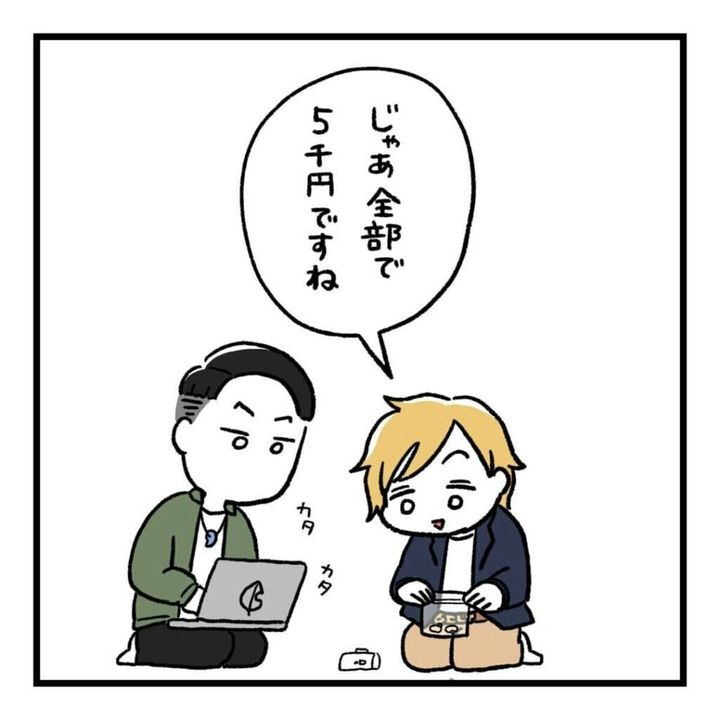 売れるものはもうないと断ったミワカモさんに業者が出した査定額はなんと5千円。さっきの5万円という発言は一体何だったのでしょうか…。ミワカモさんもいきなり出てきた5千円という金額にあ然としますが、何も言うことができません。