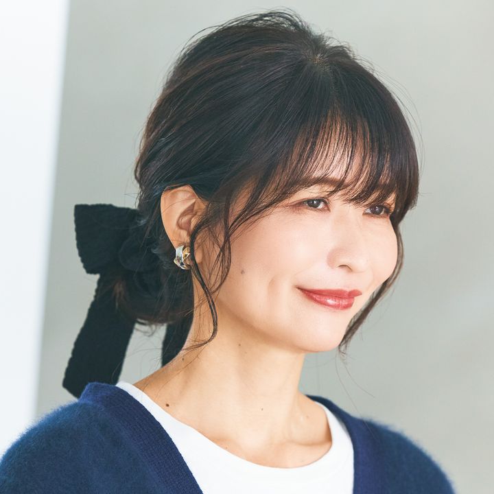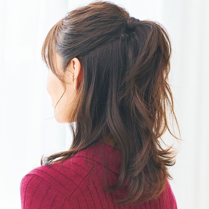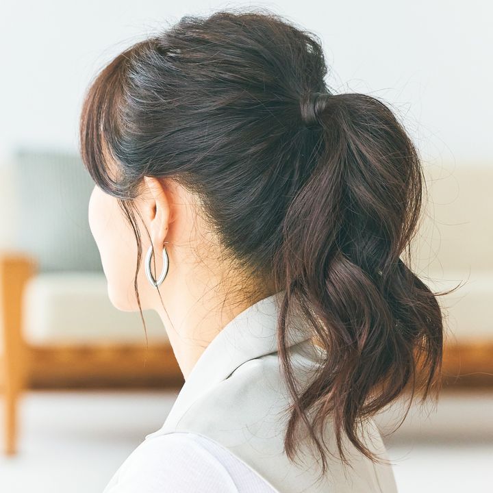 上向き毛流れの分け目が全くないポニテで髪型も気分も若々しく!