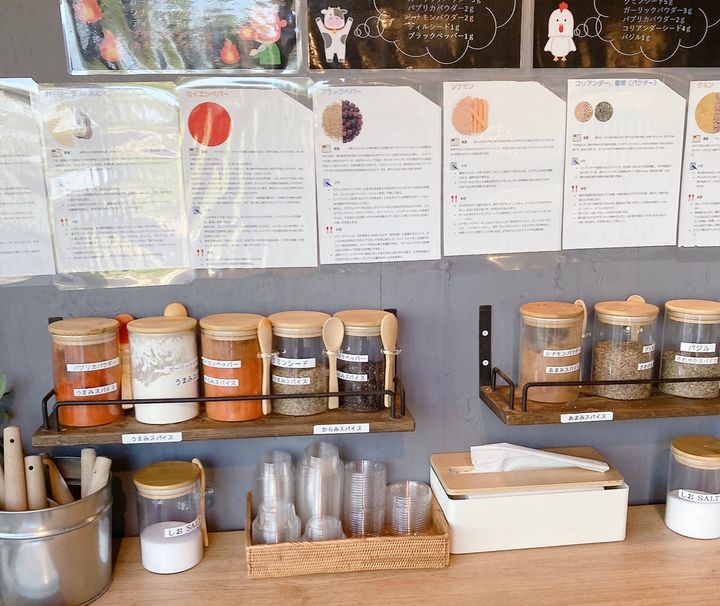 BBQで使うスパイスなどを自由に作れるコーナー。豚鶏牛にそれぞれ合うスパイスの紹介もあり、簡単に美味しいスパイスを作る事ができます!