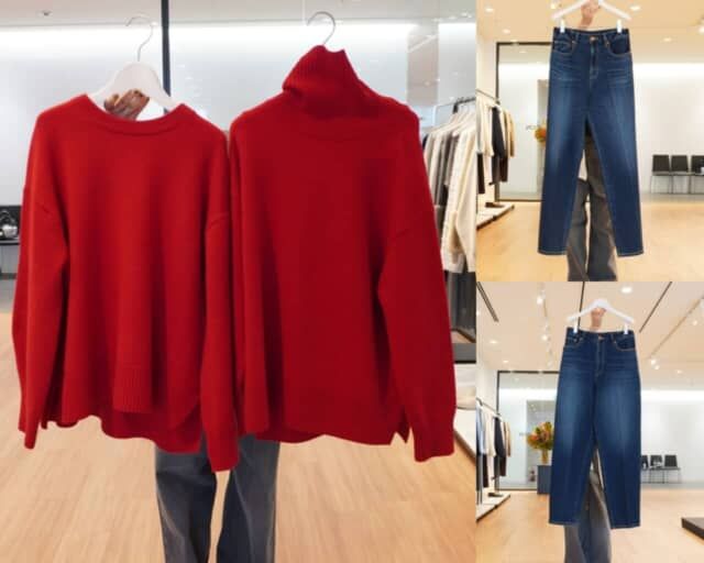 ▲左からPLST「エクストラファインメリのウールミドルゲージクルーネックセーター」 ¥8,990(税込)、PLST「エクストラファインメリノウールミドルゲージタートルネックセーター」 ¥9,990(税込)