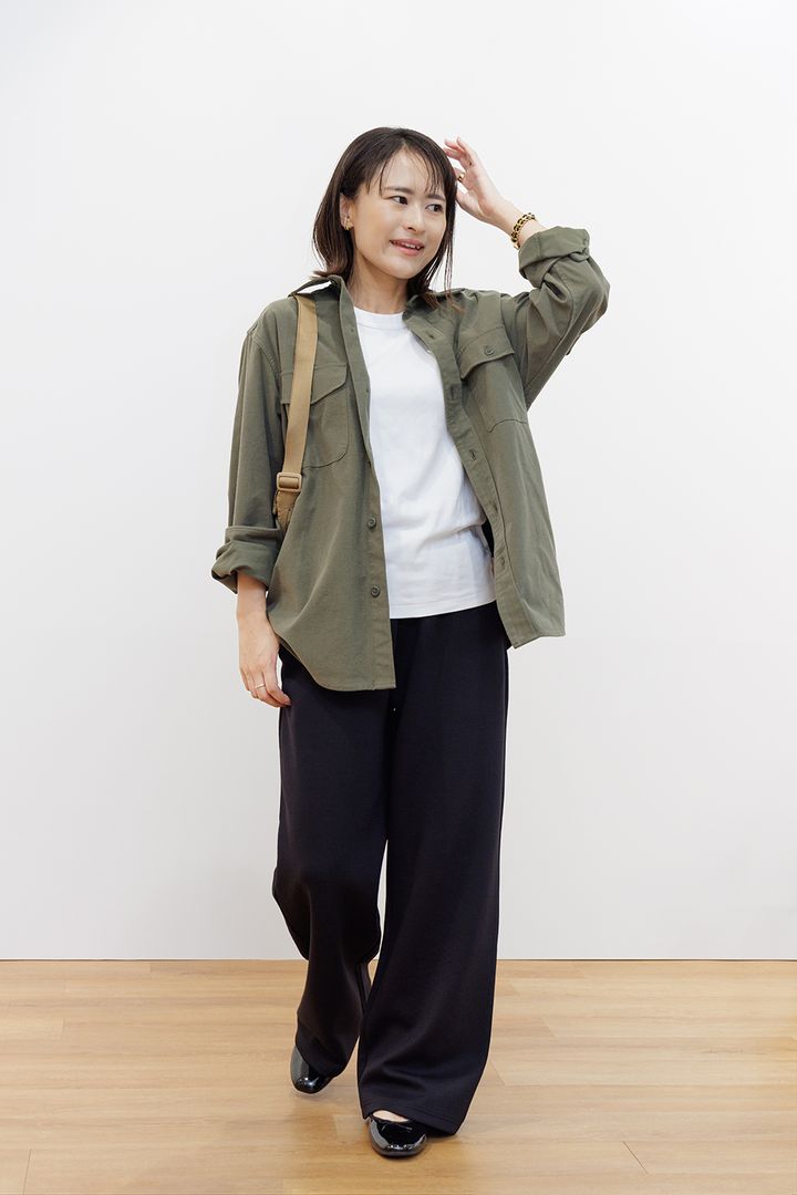 ジャージーオーバーシャツ¥2,990 ドライスウェットワイドパンツ¥3,990(ともにユニクロ)その他・私物