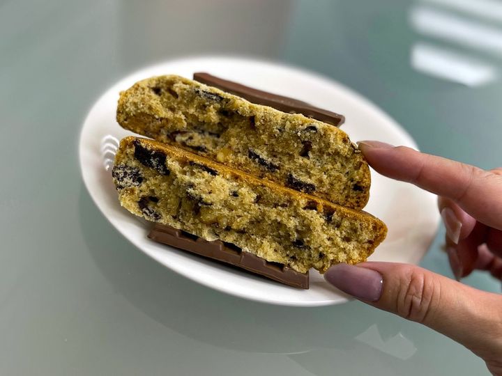 クッキー生地はしっとりしていて、ふんだんに使用されたガーナチョコレートチップの程よい甘さと、クルミやピーカンナッツ、ピーナツなどのナッツ類の食感が絶妙にマッチしておいしい! かなり厚みもあり、食べごたえはもちろん満点です。