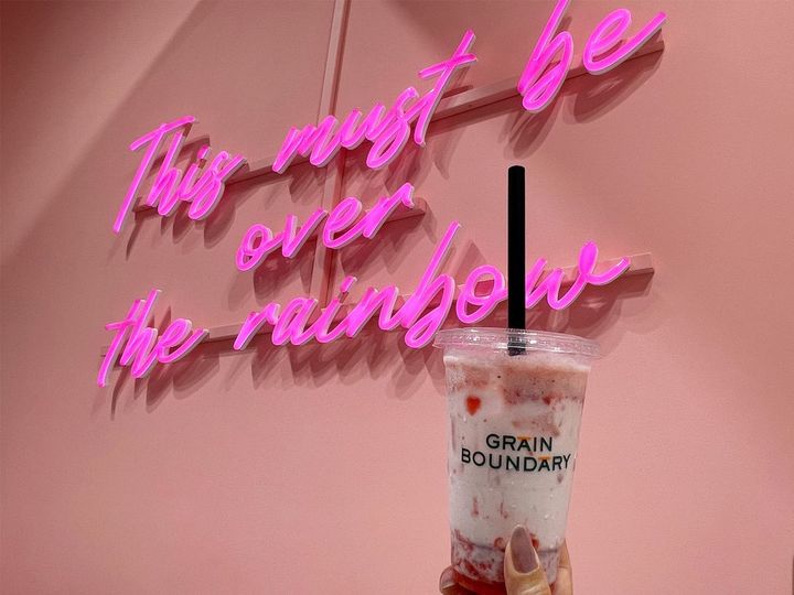 「GRAINBOUNDARY」では、ドリンクも用意されています。今回は「リアルストロベリーラテ」をチョイス。